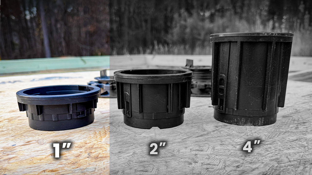 This 1" extension snaps securely between the base and the adjustment head, giving you fine-tuned height control when leveling shed floors, low-profile decks, or any 4×4 skid system. Stack multiple 1" extensions—or mix with 2" and 4" versions—for precise elevation adjustments up to the recommended 12–14" build height.